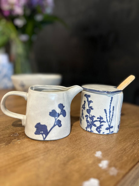 Stoneware Sugar Pot & Creamer Flute