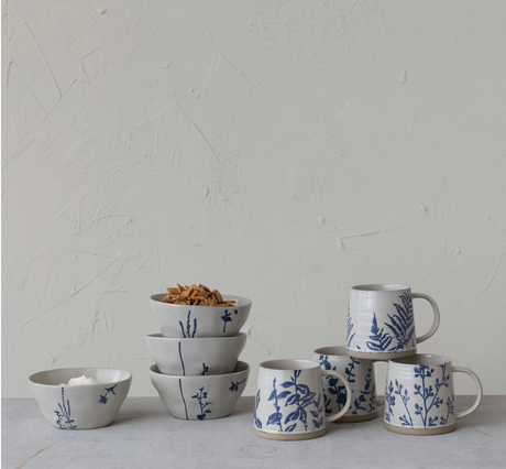 Hand-Stamped Stoneware Bowl w/ Pattern