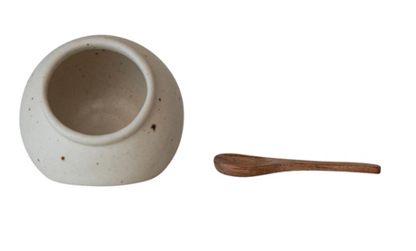 Stoneware Salt Cellar w/Mango Wood Spoon