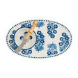 This exquisite 3-piece Block Print Tray and Tidbit Set is a perfect blend of artistry and functionality, designed to elevate your dining experience. The hand-stamped tray features a beautifully hand-painted rim, adding a touch of elegance and uniqueness to your table setting. Accompanying the tray is a coordinating tidbit dish, ideal for serving small bites or condiments, crafted with the same attention to detail. Completing the set is a stainless steel spreader, featuring a bamboo wood handle that offers a comfortable grip and a natural aesthetic. The tray measures 6 3/4" x 11 1/4", providing ample space for serving a variety of dishes, while the tidbit dish, with a diameter of 2" x 3 3/4", is perfectly sized for smaller servings. The spreader, at 5 1/4", is designed for easy spreading of soft cheeses, butter, or spreads. Made from durable stoneware, this set is not only a practical addition to your kitchen but also a stylish one, sure to impress your guests.