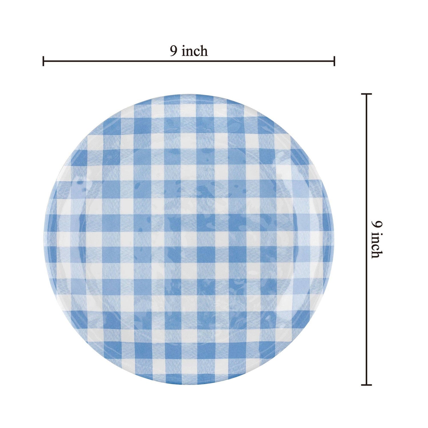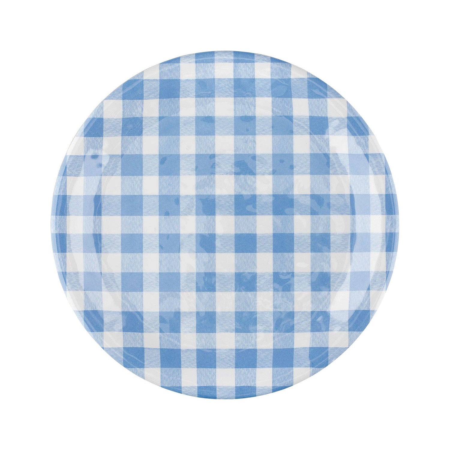 Set a gorgeous dinner table with blue gingham print pieces that coordinate perfectly. These blue gingham melamine dinnerware set are attractive, functional and a welcome addition to any indoor or outdoor table. It's shatterproof and food safe properties, perfect for entertaining, this set will be a fun addition to your gingham and plaid party, or use daily to add a bit of joy to your everyday. Easy to clean and dishwasher safe.