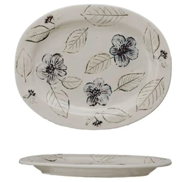 Oval Stoneware Plate w/ Flowers