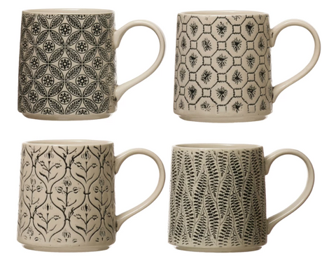 Black & Cream Print Stoneware Mugs