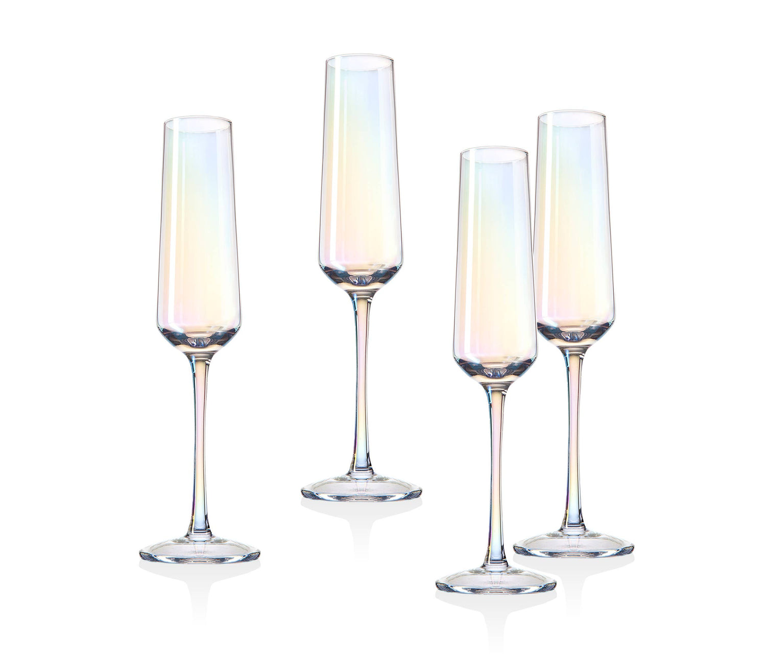 Indulge in the luxurious champagne dreams with our set of 4 Iridescent Champagne Flutes. Made with iridescent glass, these flutes add a touch of elegance to any special occasion. Elevate your drinking experience and toast to life's special moments with these beautiful and unique flutes.