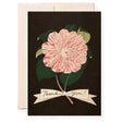Our camellia thank you greeting card is printed and foiled in memphis, tn. Full color ink printed on natural white paper, letterpress printed in gold foil and paired with a pale pink envelope. Book folded card, blank on the inside.