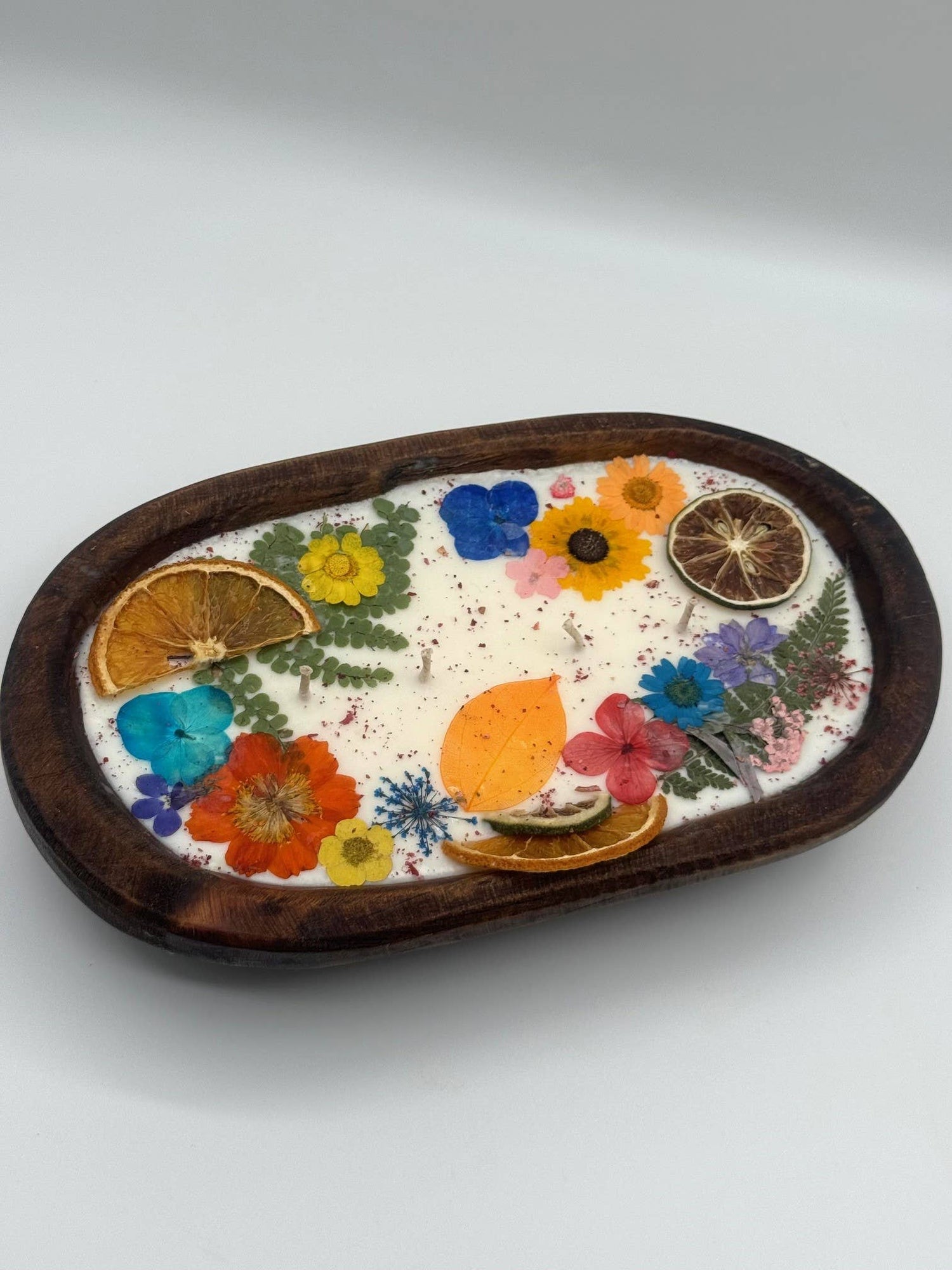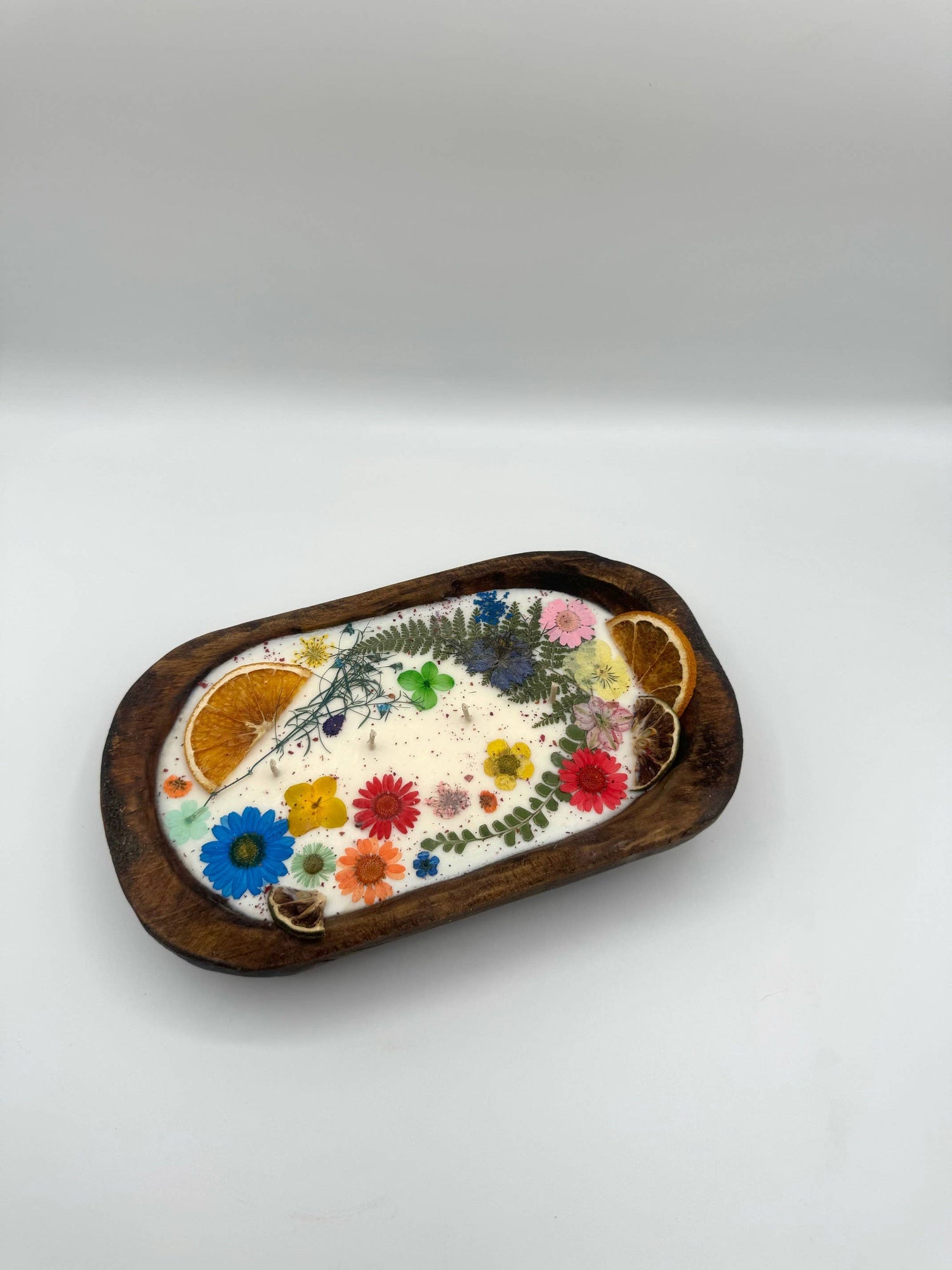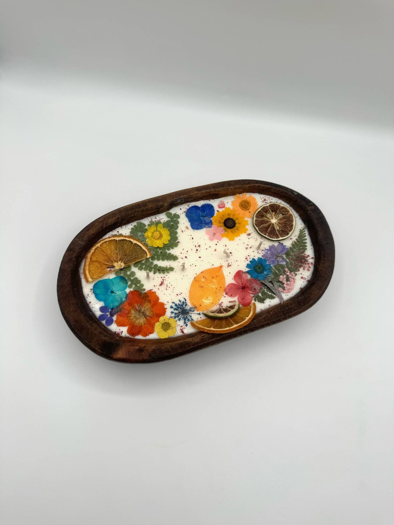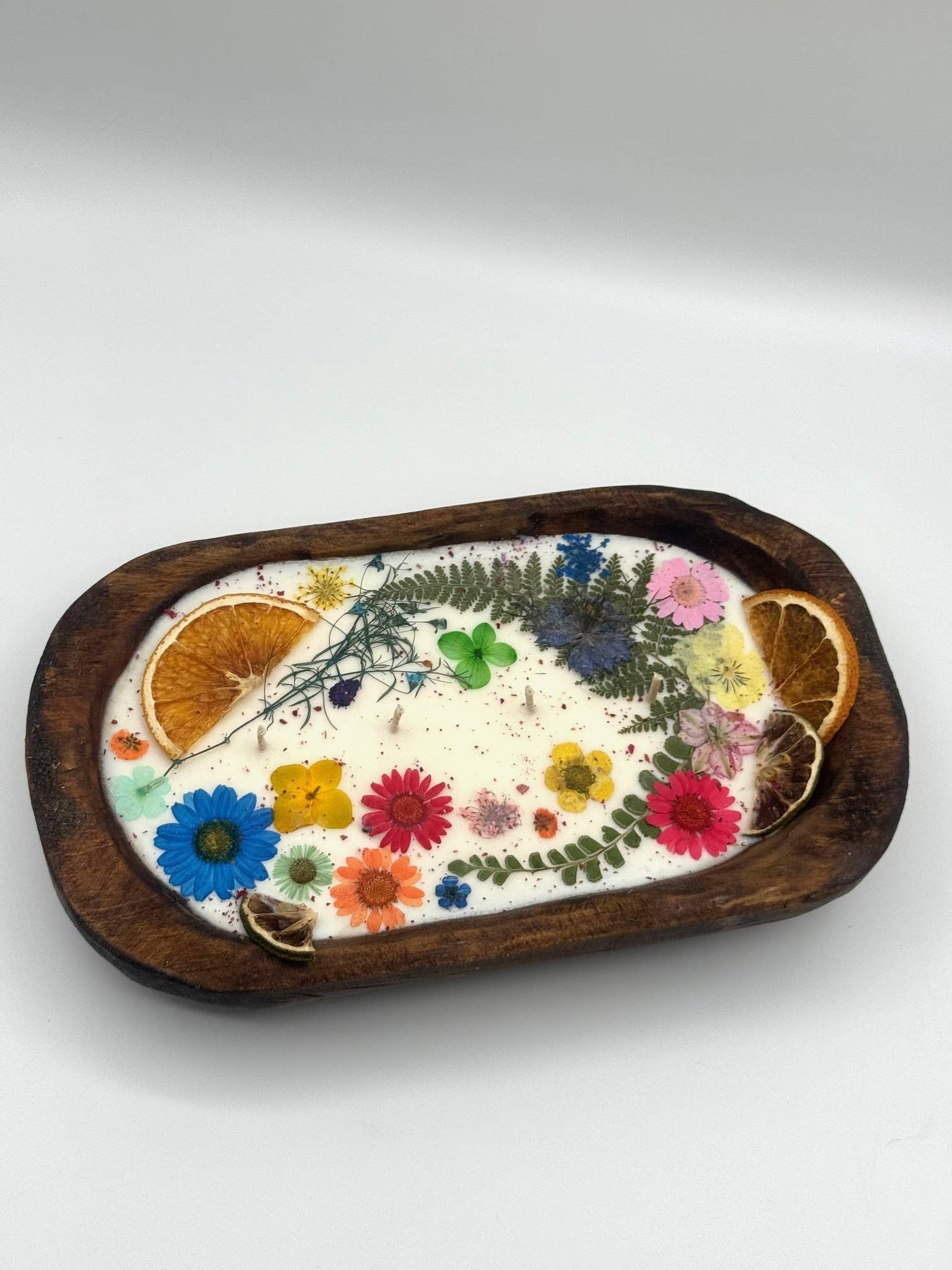 These beautifully handcrafted botanical Citronella floral candles are crafted locally in New Jersey using all-natural soy wax. Each candle is made with a 100% cotton wick for clean burning in an eco-friendly & sustainable wax. Featuring natural dry flowers, these luxury candles are a treat for the senses. These candles fill your home with a note of lemongrass & adds a boost of citrus citronella, which helps to keep unwanted pests away such as mosquitoes away while you socialize. Free of harmful phthalates & paraffin, they provide a warm, welcoming glow without chemicals. Crafted with care, each one is hand-poured into a wooden bowl for an elegant presentation, creating a stunning visual accent for any room.