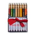 From our capsule collection - lil’ kingdom - a lighthearted collaboration with artwork by Avery Tosi. Our Game pencil set includes eight mini pencils. They come sharpened and a great gift for anyone who loves game night. pencil color | assorted ferrule color | gold eraser color | white material | wood + graphite dimensions | 4 inches quantity | eight pencils