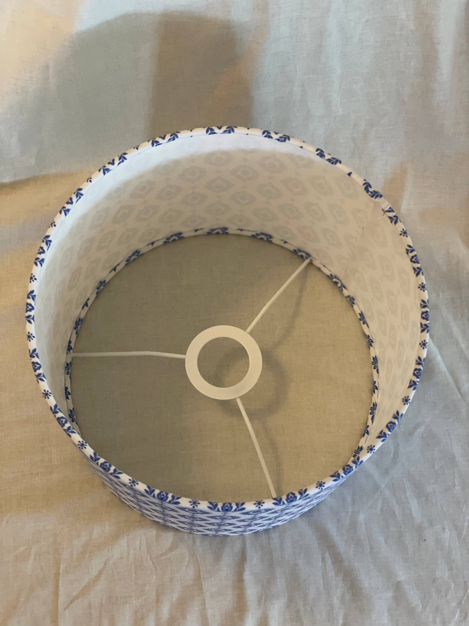 This is medium sized lampshade (10 x 10 x 7) which can be used on lamp or hung as a pendant. So versatile! You have a choice of fittings.  This lampshade is handmade, with vintage, hand printed, hand woven, and/or hand dyed fabric. There will be slight differences, and tiny flaws that would not appear on a mass produced item. We make the shades as carefully as possible, and love the hand made look.