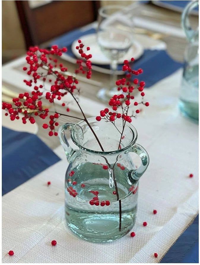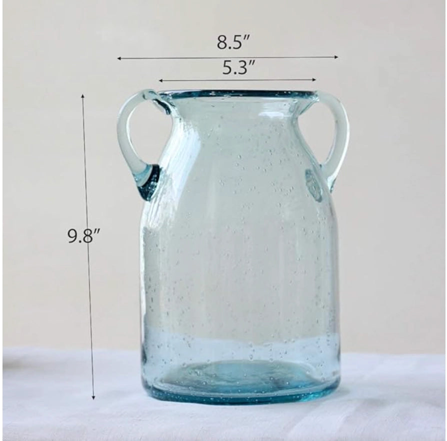 This Farm House Double Ear Glass Vase is a hand blown masterpiece, adding a touch of elegance to any room. Its unique design and craftsmanship make it a perfect accent piece for any modern or traditional home. Made with high-quality glass, it offers durability and timeless style.