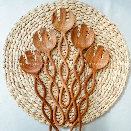 Twisted Handle Wooden Salad Spoon - 12.5"