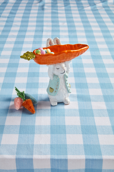 This charming hand-painted stoneware bunny is a delightful addition to any home decor. Crafted with meticulous attention to detail, this adorable bunny figure is designed to hold a carrot candy well, making it both a functional and decorative piece. The bunny's gentle expression and intricate brushstrokes bring a touch of whimsy and warmth to your space. Measuring 7 inches by 7 inches, it is the perfect size to display on a kitchen counter, dining table, or as part of a festive centerpiece. Whether you're celebrating a special occasion or simply adding a playful element to your everyday decor, this stoneware bunny is sure to bring joy and charm to your home.